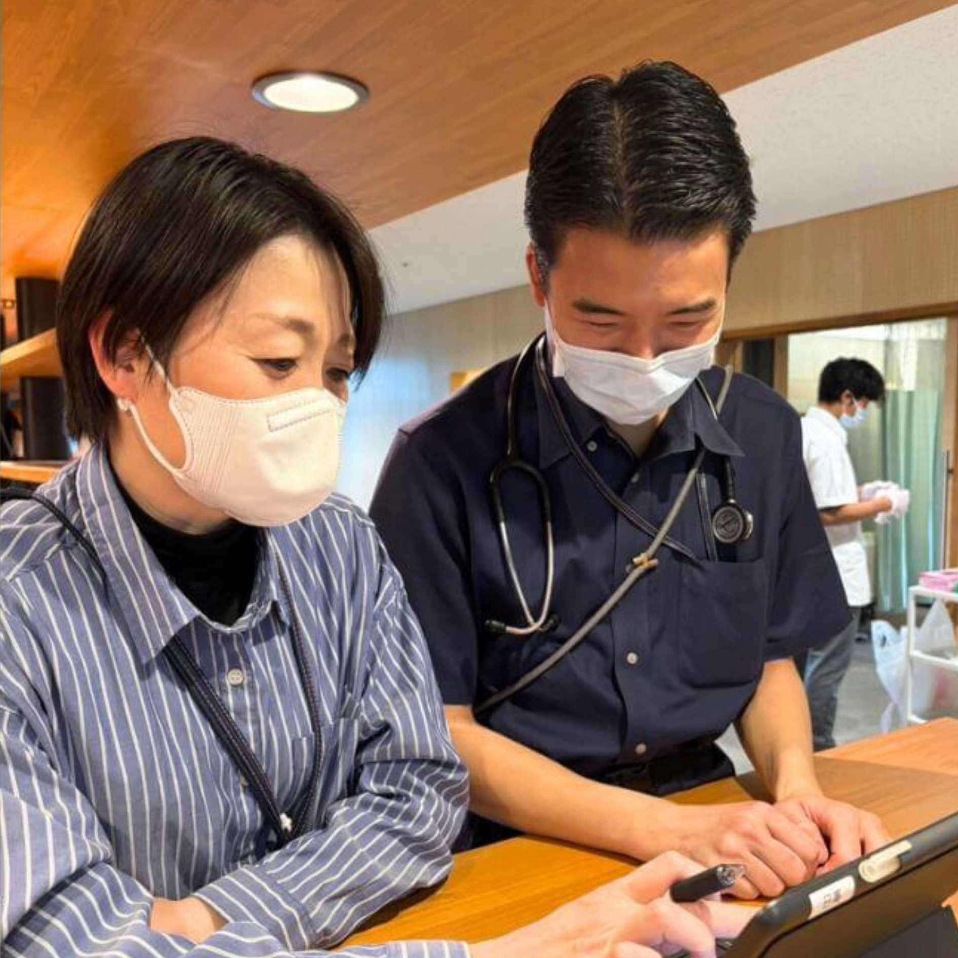 そして、すべてのスタッフが職種を問わず同じ服装を身にまとっているので、患者さんが服装で医師や看護師を判別することはできません。そのため患者さんがリラックスをした様子で、医師や看護師とお話をされている雰囲気が良いなと感じました。