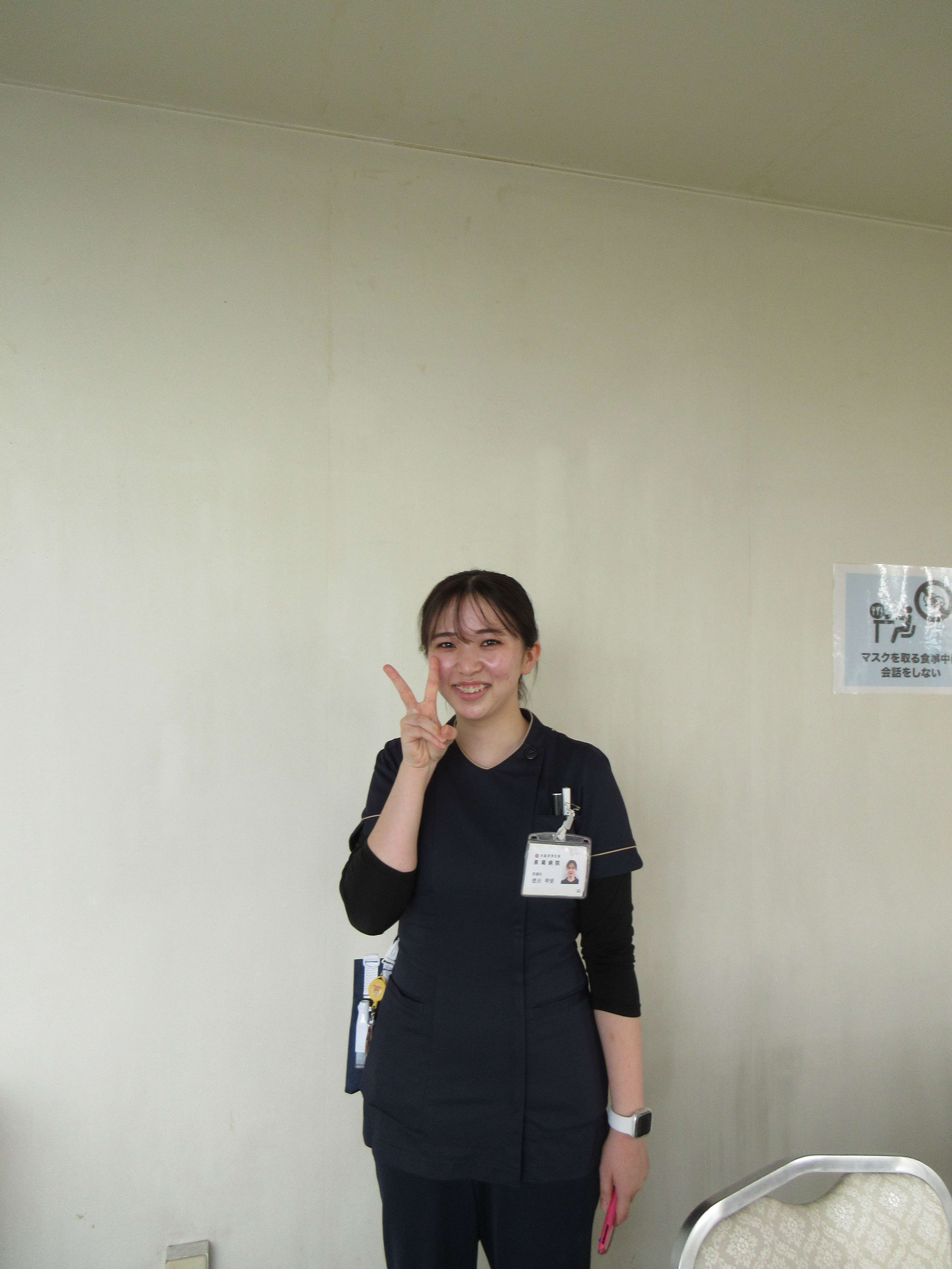 新人研修で初めて採血の練習をしたとき「看護師になったんだ!」と実感したのを覚えています。現場では、仕事中に真剣な先輩方が、勤務が終わると気さくに話しかけてくれます。オンとオフの切替がしっかりしていて、温かい雰囲気があるところが泉尾病院の魅力です。