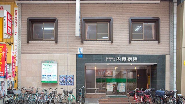 内藤病院は、阪神なんば線・地下鉄中央線の九条駅から徒歩5分というアクセス抜群の好立地に位置する地域密着型の病院です。活気ある商店街の中にあり、地域の皆様の健康を長年支え続けています。