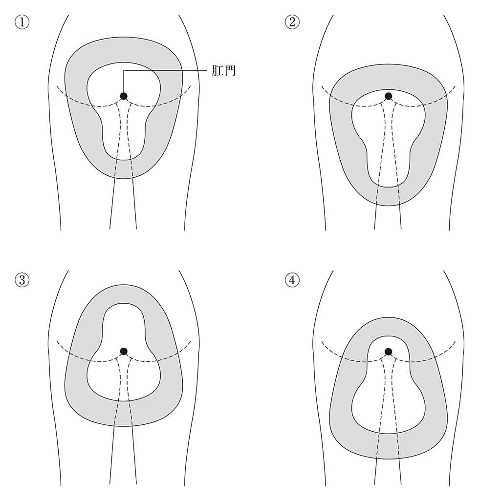 女性患者の床上排泄で洋式便器をあてる位置を図に示す。適切なのはどれか。