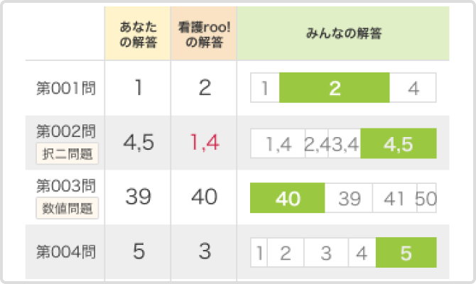 - みんなの解答&解答速報でどの問題が正解扱いになっているか確認。受験生が選んだ選択肢の分布がわかる!