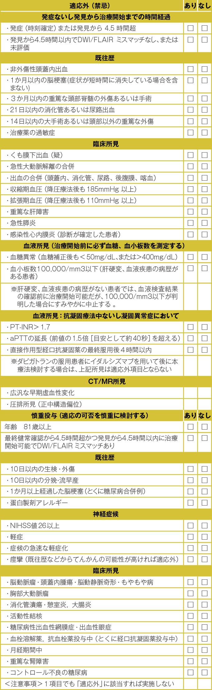 表1静脈血栓溶解療法のチェックリスト