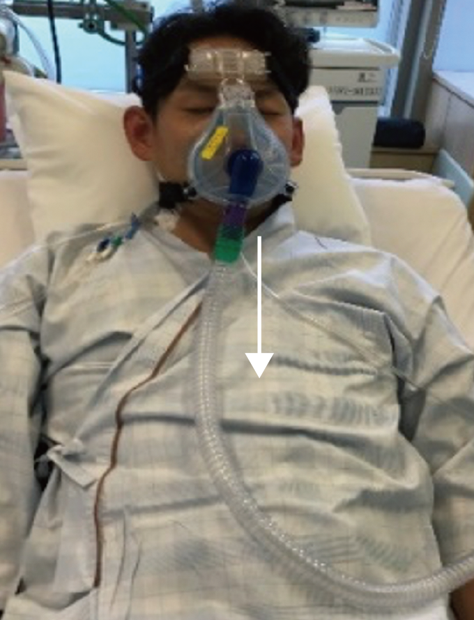 非侵襲的陽圧換気療法(NPPV:noninvasive positive-pressure ventilation)の装着