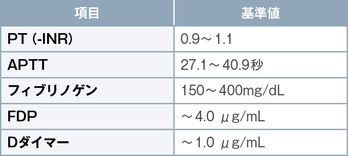 また、PT‒INRおよびAPTTは正常値の1.5倍以上を目安とし、フィブリノーゲンは100mg/dL未満で新鮮凍結血漿の輸血を考慮する(もしくは大量出血症例などでは150mg/dLをトリガーとする)。