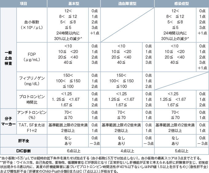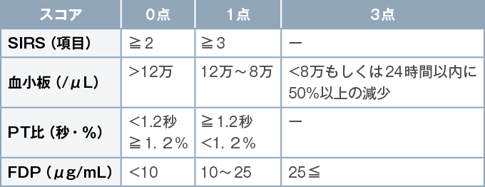 (DIC診断基準作成委員会:日本血栓止血学会DIC診断基準、2017年版、https://www.jsth.org/wordpress/wp-content/uploads/2015/04/28巻3号_DIC診断基準.pdfより改変)