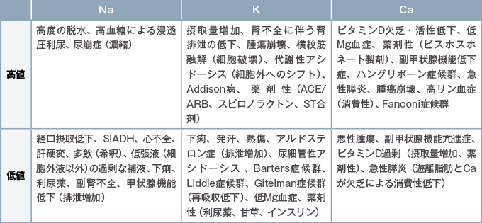 表2電解質異常の原因