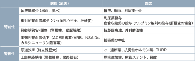 表9AKIの原因とマネジメント(腎前性・腎後性)