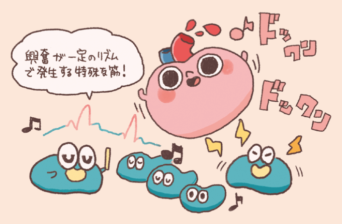 心臓には、脳からの神経による刺激がなくても自ら一定のリズムで興奮を発生させて繰り返し動かす性質があります。