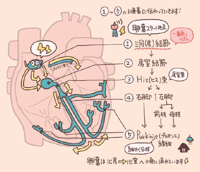 この集まりは、興奮が速いものから伝導していくしくみとなっています。