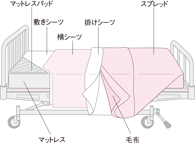 重篤な患者の場合、リネン交換が大きな負担になることがあります。そのような場合は、リネン交換を行わなくても快適に過ごせるようにするために、汚れやすい部分に横シーツを用います。