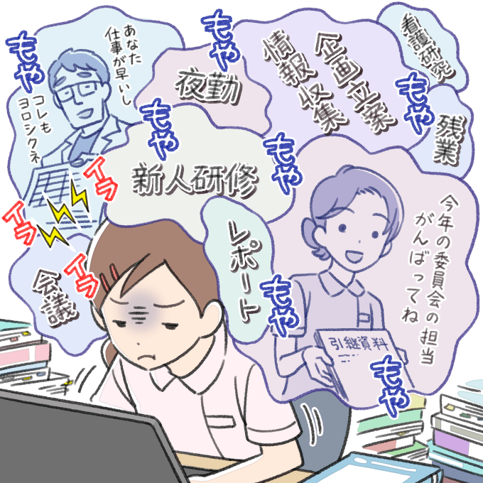 4年目なので、委員会の担当や看護研究、新人教育の研修企画など、病棟で誰かが担当しなくてはいけない系の仕事も増えるのは理解しているのですが、他の同期や先輩よりも明らかに多く振られてしんどいです。